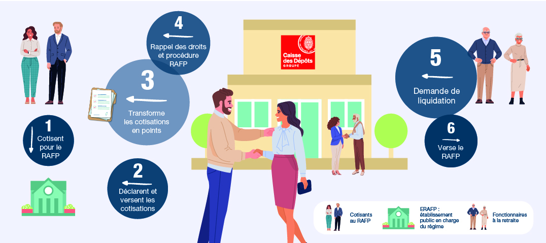 3. Calcul des points : la Caisse des Dépôts transforme les cotisations en points RAFP pour chaque agent.